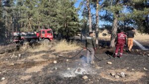 Kars’ın Sarıkamış ilçesinde ormanlık alanda çıkan örtü yangınında yaklaşık 1 hektar alan zarar gördü.
