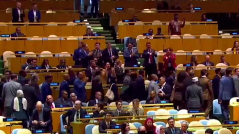 İsrail Başbakanı Binyamin Netanyahu, 80. Birlemiş Milletler Genel Kurulu’na hitap etmek için kürsüye çıkıp konuşmaya başladığı anda diğer ülkelerinin temsilcileri Gazze’deki katliamların sorumlusu olarak kabul edilen Netanyahu’yu protesto etmek için salonu terk ettiler.